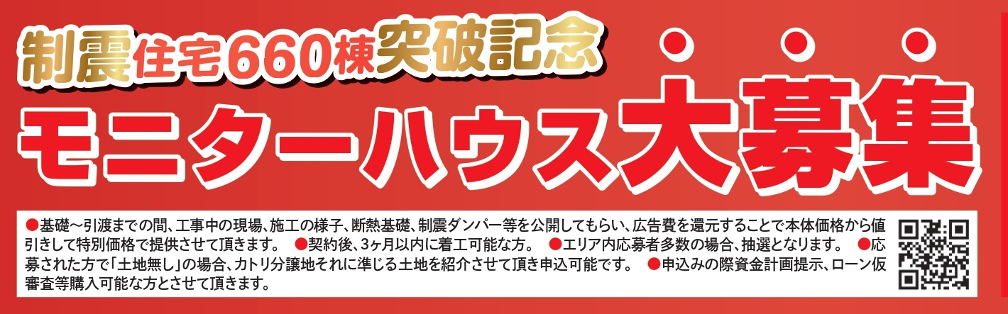 制震住宅660棟突破記念フェア モニターハウス大募集 2026年1月11日・18日・25日に開催
